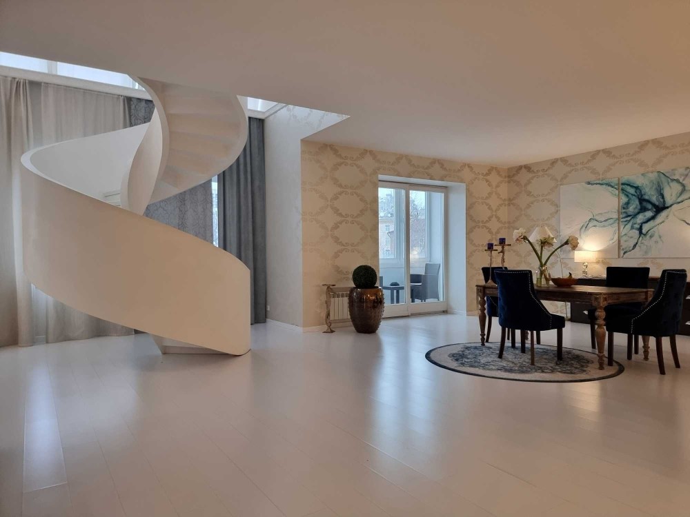 Розкішні аппартаменти в історичному центрі, сучасний дизайн, 100% комплектація дорогими меблями та технікою, 3 окремі спальні, дві спальні з власними санвузламми та просторими гардеробами. Діючий камін, вітальня 70 м.кв., дві тераси з видами на історичний центр, підземній паркінг та власне укриття. розвинена інфраструктура, гарний цегляний будинок.