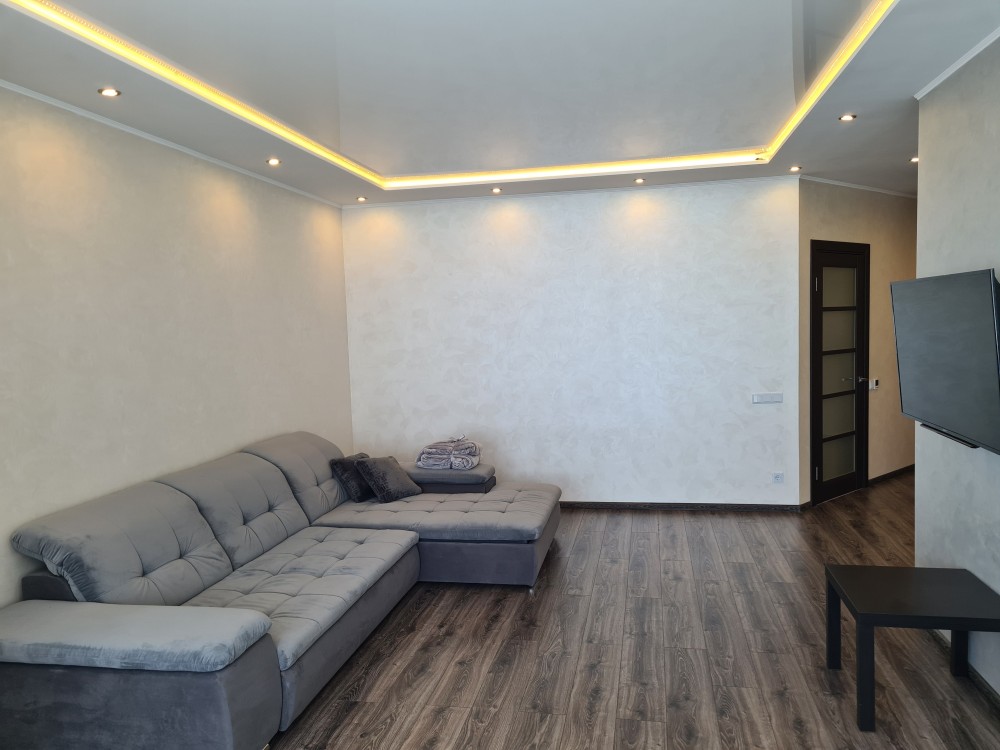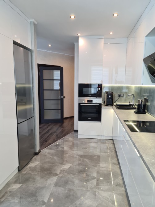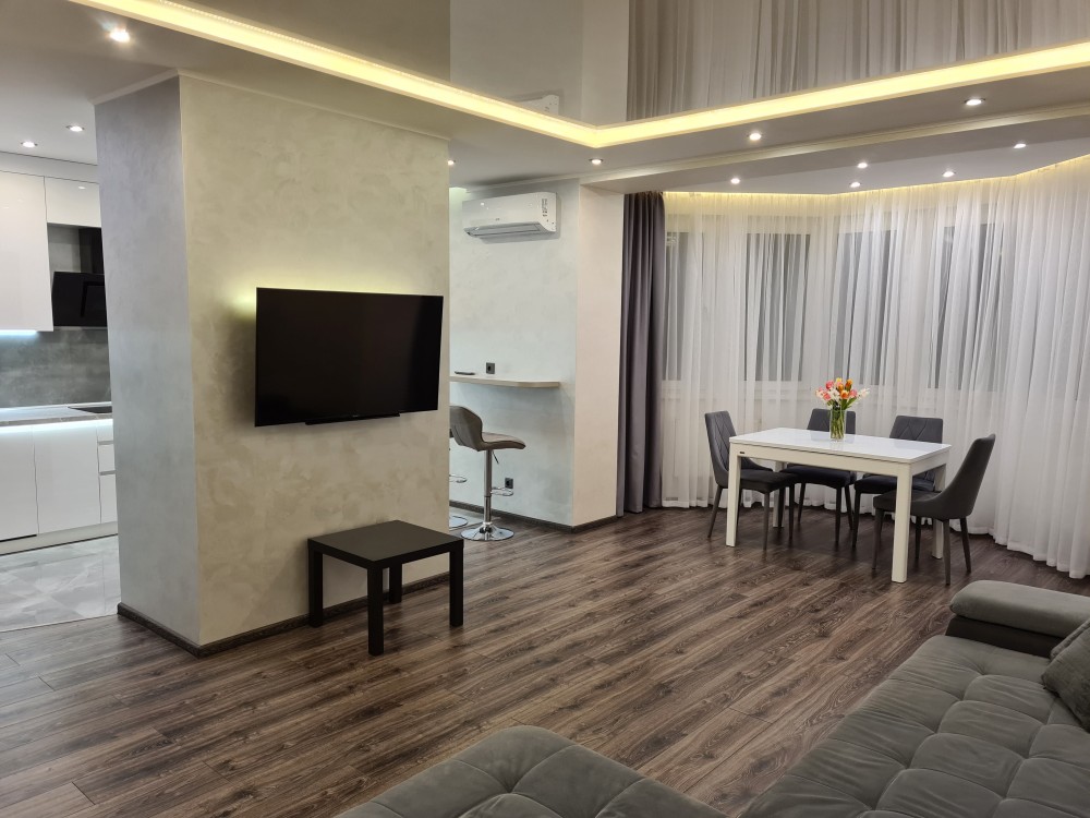 Велика кухня з вітальнею, 2 спальні, кабінет, гардероб, два повноцінні санвузли. Є тепла підлога для підвищеного комфорту, раціональне та функціональне планування.