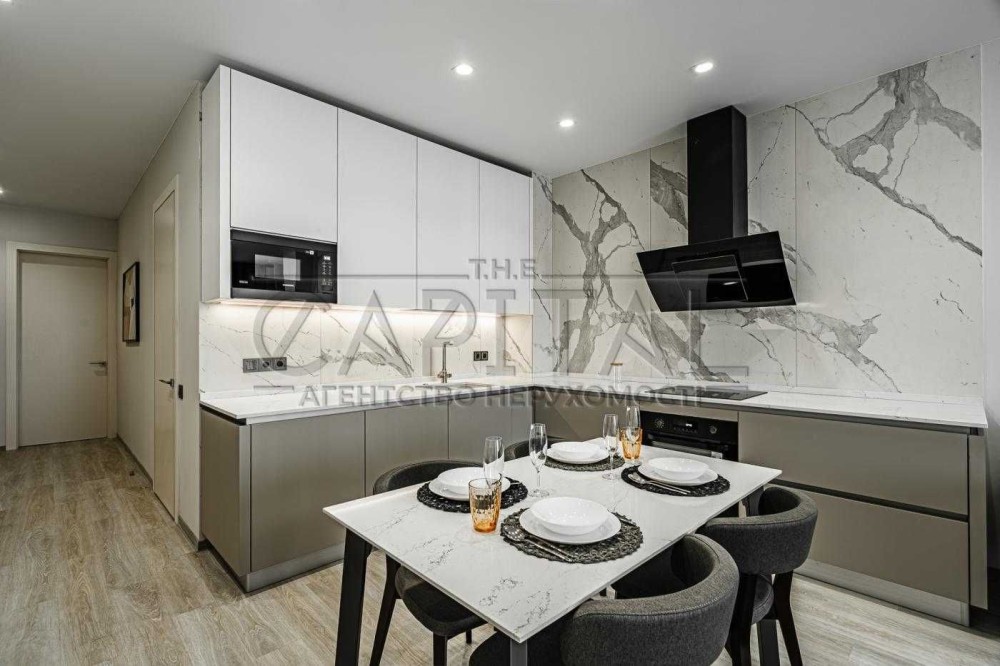 - Кухня-вітальня, повністю укомплектована сучасною побутовою технікою, включаючи духову шафу та посудомийну машину.