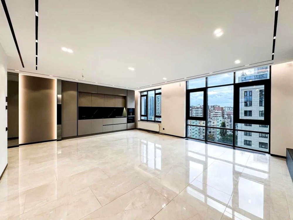 Простора квартира площею 200 м² розташована на 10 поверсі 10-ти поверхового будинку. Продумана планировка включає 4 кімнати, велику кухню-гостьову - 45 м² и комфортну житлову зону - 90 м².