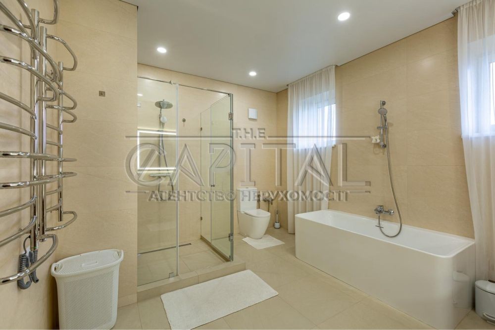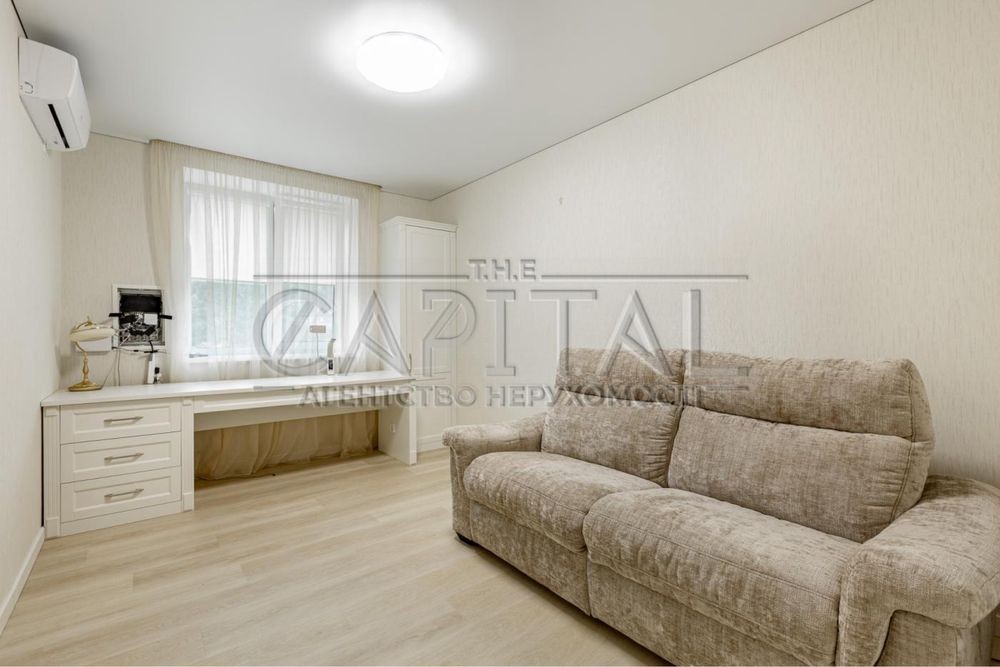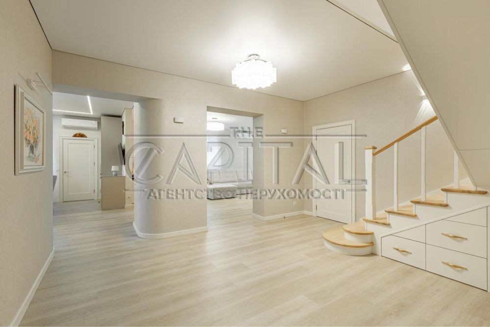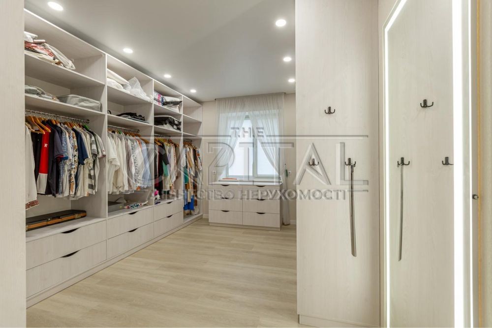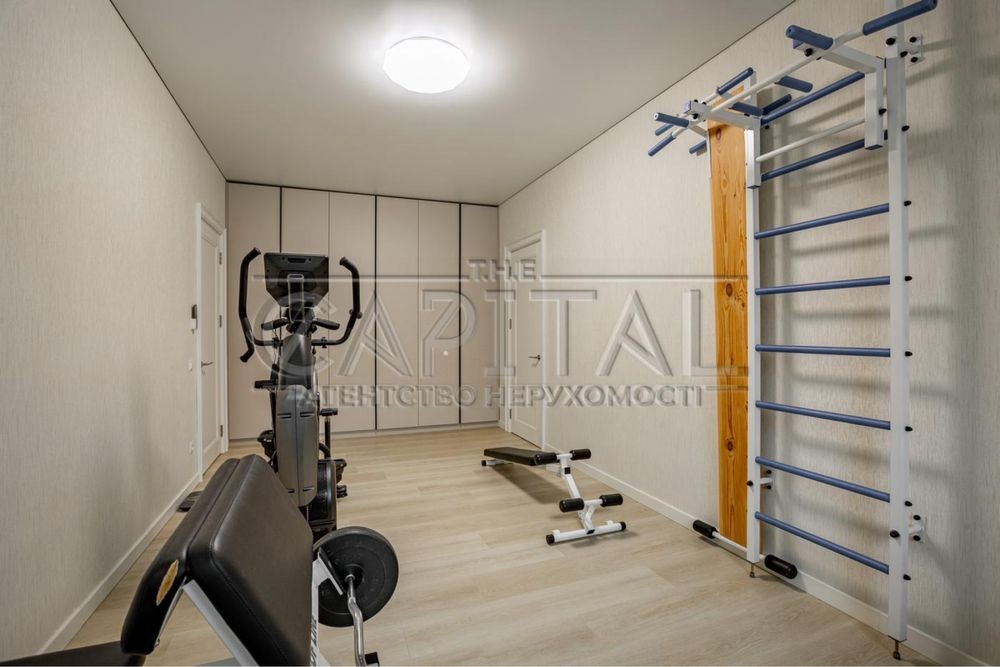 Хол з читальною зоною, 2 спальні, гардеробна, санвузол з ванною і душем, кабінет із розкладним диваном, спортзал, пральна кімната.