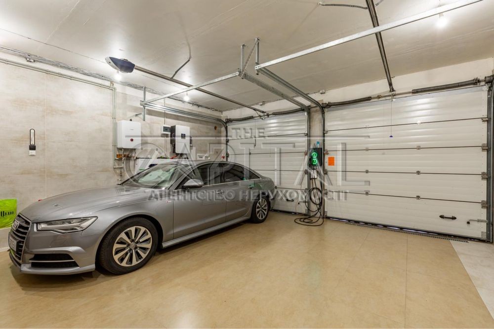 Площа будинку — 380 м². Повністю автономний: сонячна електростанція з акумуляторами 30 кВт, дизельний генератор 6 кВт, стабілізатори напруги 3×50 кВт. Опалення: електро- та газовий котли, водяна та електрична тепла підлога. Система очищення води Ecosoft. 7 кондиціонерів. Оптоволоконний інтернет. Стіни — цегла 50 см утеплення 15 см. Зарядні станції для електромобілів 20 кВт. Резервуар для води 1000 л.