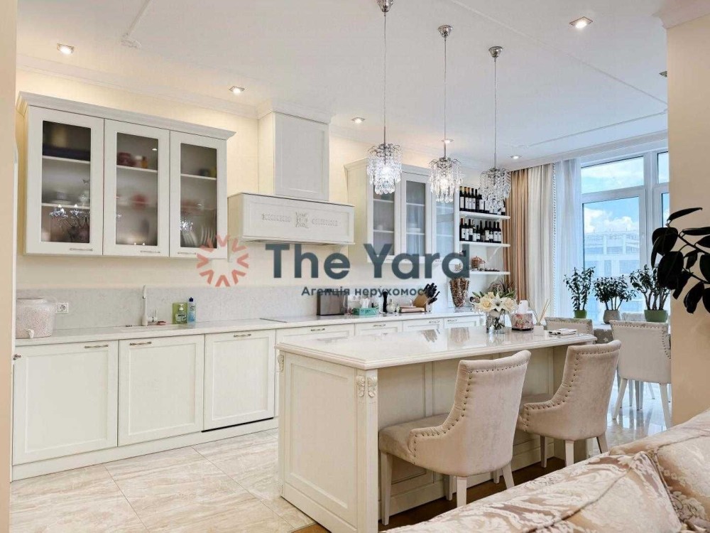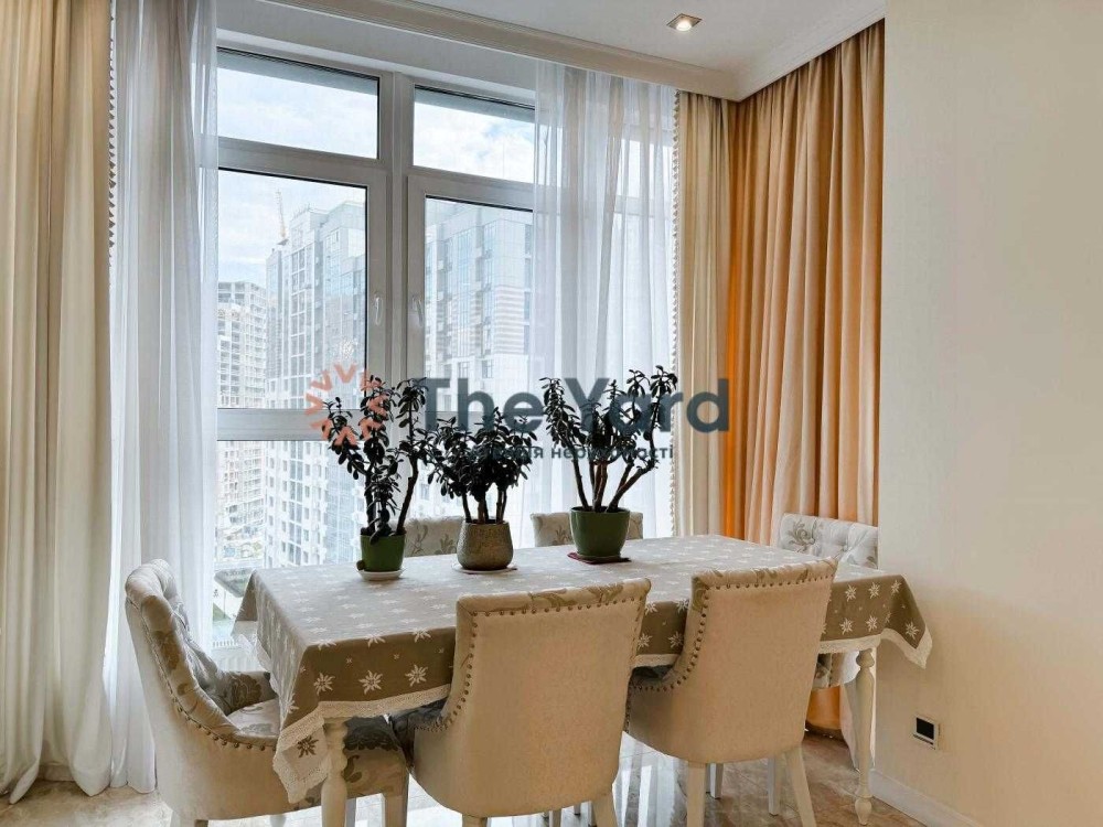 Пропонується в оренду дизайнерська п'ятикімнатна квартира в ЖК "Новопечерські липки" за адресою вул. А. Верхогляда (М. Драгомирова) 11. У квартирі грамотне й функціональне планування, також оселя повністю укомплектована необхідними меблями й технікою.