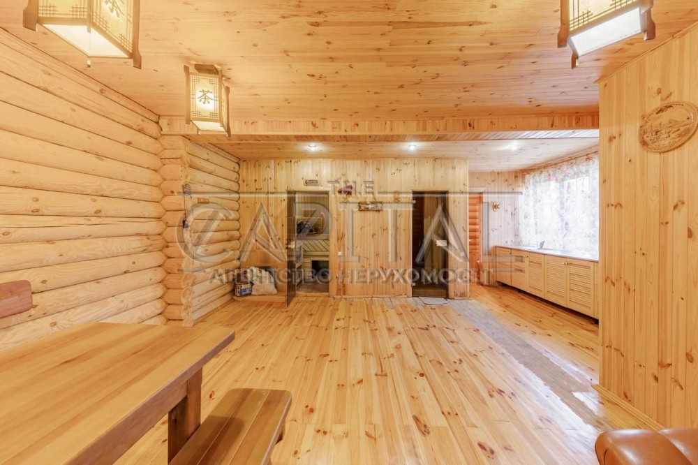 Оренда автономного будинку, Мощун, Бучанський р-нПуща-Лісова: Автономна резиденція в сосновому лісіЛокація: 12 км від Києва, закрите містечко на 15 будинків (охорона 24/7).Головне:• Енергонезалежність: Газ генератор 7 кВт.• Ділянка: 24 сотки, ландшафтний дизайн, автополив.• Інфраструктура: Власне озеро на території, 10 хв до SPA «Пуща Лісова».Характеристики будинку (330 м²):• 7 кімнат: вітальня з каміном, кабінет, більярдна.• Wellness: дерев'яна лазня відкритий басейн.• Ремонт: авторський дизайн, екологічні матеріали, техніка світових брендів.• Комфорт: тераса, зона барбекю, теплий гараж, кондиціювання всіх зон.Статус: Готовий до заселення.Перегляди: за домовленістю.#A27704