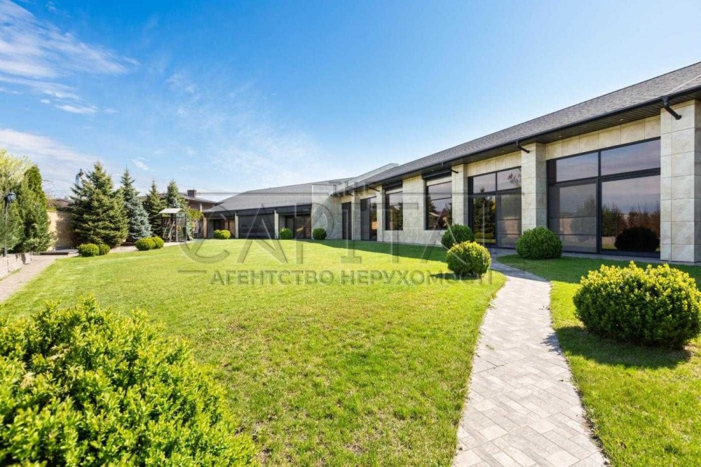 Пропонується стильний та дуже функціональний котедж площею 1100 м² на ділянці 35 соток, з власною терасою, виходом до річки та джакузі просто на подвір’ї.
