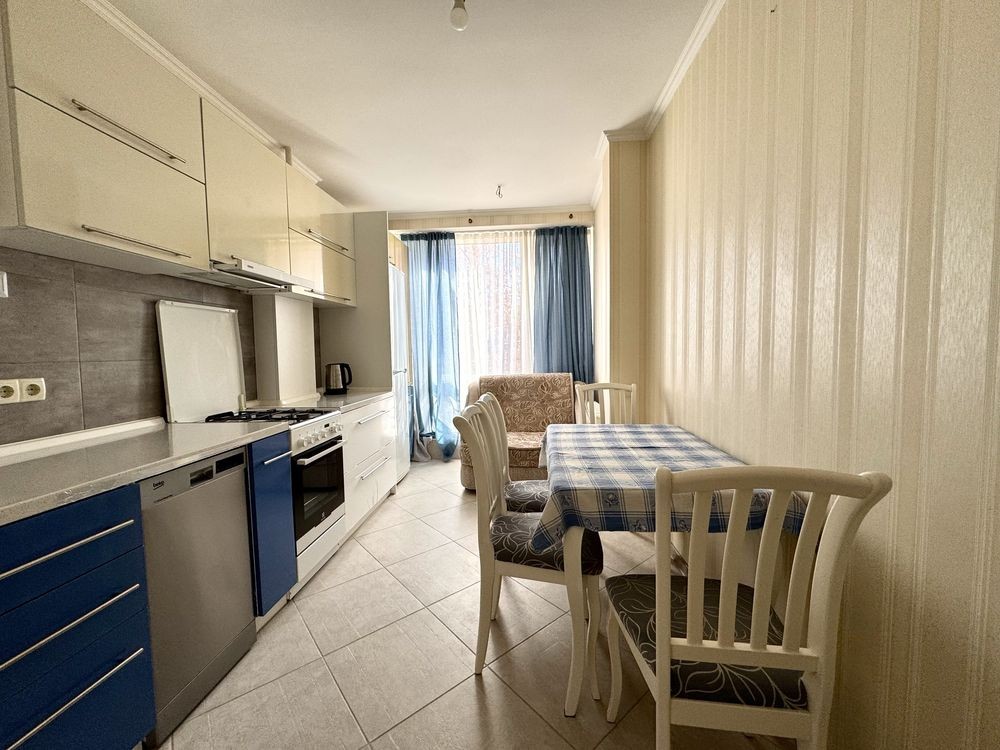 Все є необхідне для життя: двоспальне ліжко з підйомним механізмом, великий диван в спальні, шафа в коридорі, пральна машинка, вбудована кухня, двоконтурний газовий котел, посудомийна машинка, холодильник з морозильною камерою, диван на кухні, тумба в передпокої, стіл та 4 стільці, газова плита з духовою шафою, телевізор, електричний чайник, рушникосушарка водяна.