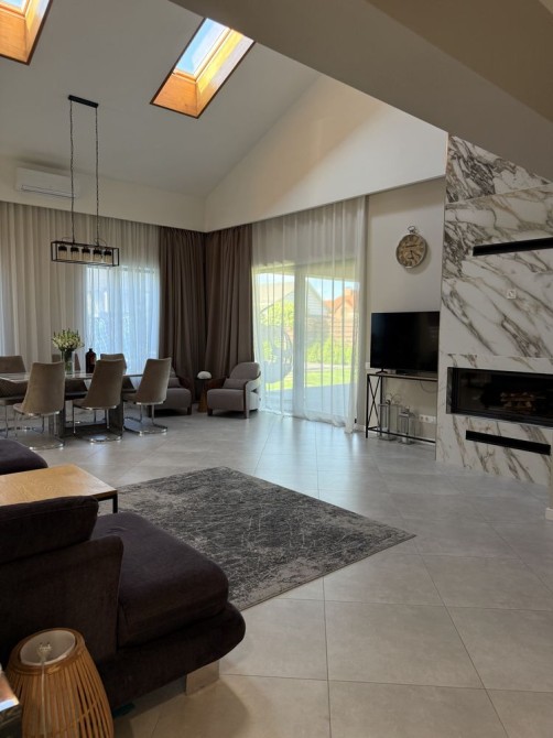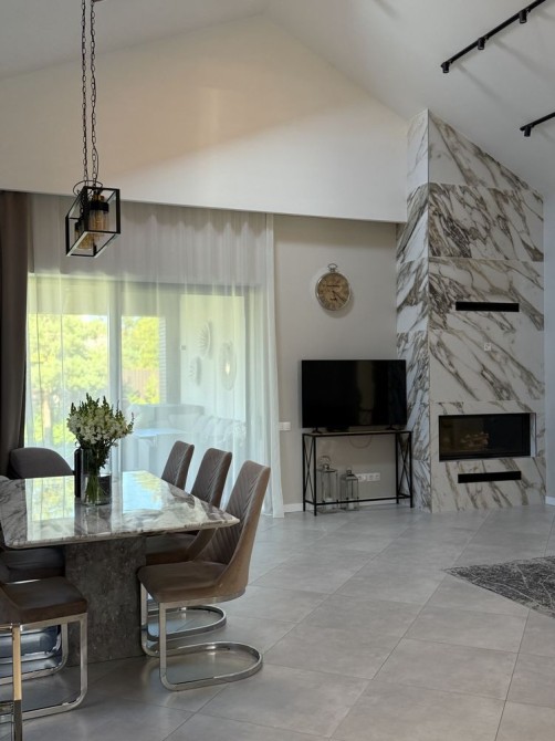 Велика простора кухня-вітальня з каміном та виходом на терасу. Гараж на 2 авто та парковка на 4 авто біля будинку. Автоматичні ворота.
