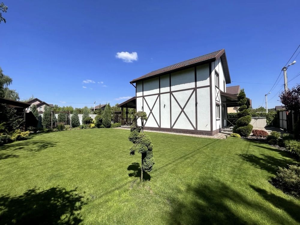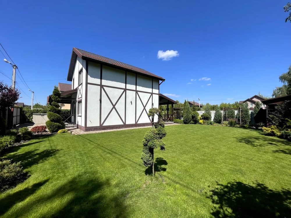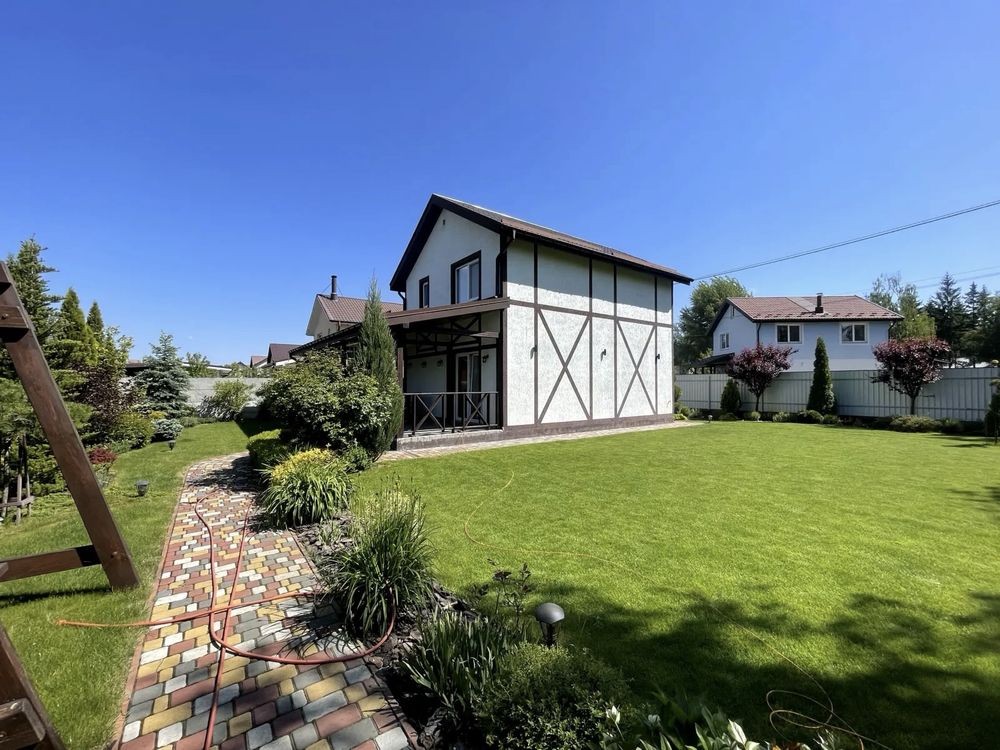 Село Забуччя. 13 км від КП по Житомирській трасі, 19 км від автост.Дачна. 4 км до ЖК Синергія (Ірпінь), 7 км до Бучі. Будинок має 6 кімнат (4 спальні), 2 зали, 4 санвузла, душова. Асфальтований під'Їзд.Будинок під охороною, камери відеоспостереження. Ділянка: Ландшафтний дизайн,басейн, автополив. Відкрита тераса з барбекю. Будинок має мансарду та цокольний поверх. На першому- хол та кухня-студіо, санвузол, туалет та гараж 35 кв.м.. На другому спальня та двоповерховий кабінет, який можно облаштувати під спальню. На третьому кабінет, спальня з санвузлом. Останній поверх- мансарда з санвузлом. На цокольному поверсі велика кімната( під спортзал)де є бігова доріжка, пральна, сауна,душова, техприміщення та 2 кімнати-кладові. На другому поверсі відкрита велика тераса, на третьому балкон. Підлога, керамограніт, плитка, ламінат. Газове опалення, підігрів підлоги на декількох поверхах. камін, сауна. 3 кондіціонера, газовий котел та електроболер. Інтернет оптоволокно.