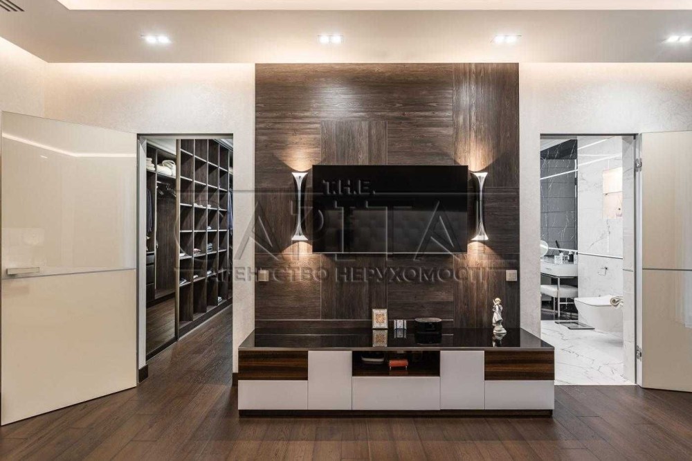 На другому рівні – велика майстер спальня з гардиробом та санвузлом, дві гостьові спальні, велика гардеробна кімната та санвузол.