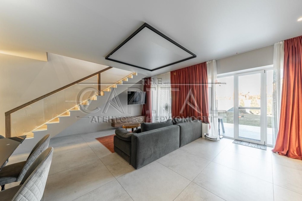 Життя у комфорті, безпеці та спокої — саме так почуваєшся в цьому сучасному будинку, розташованому в закритому котеджному містечку всього за кілька хвилин від центру столиці.