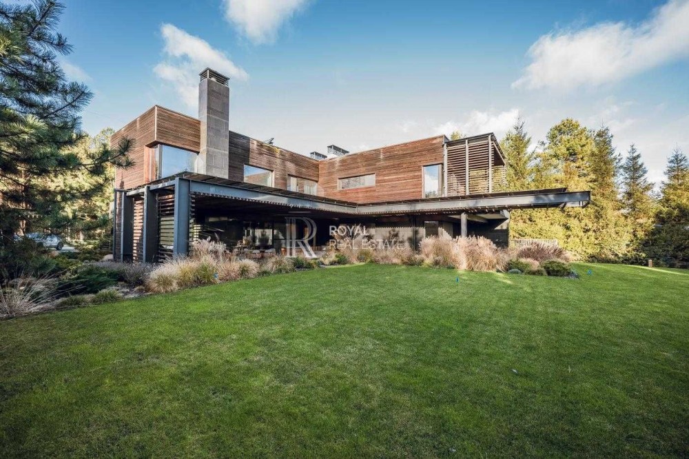 Фасад облицьований натуральним гранітом та ліственицею, що підкреслює статус та сучасну архітектуру.