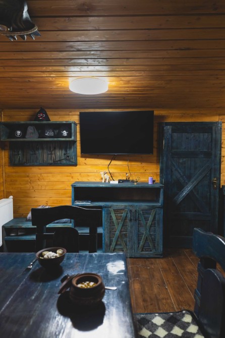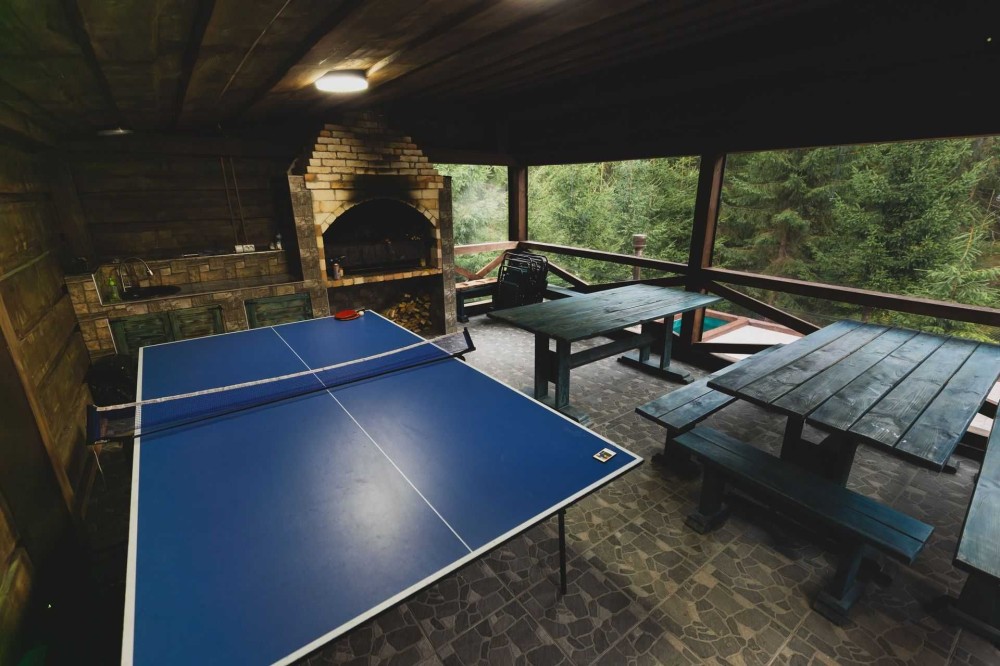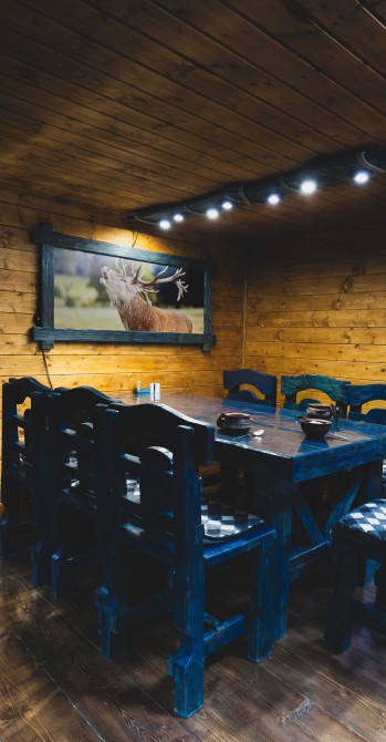 Ціна від 10000 грн. До 7 гостей -10000 грн за добу. Лазня та басейн оплачується окремо 5000 грн за добу або погодинно -1000 грн за годину.(Мінімум 4 години). Доплата за кожного наступного гостя 1000 грн. П’ятниця ,субота та неділя вартість оренди на 1000 грн вище. 332 Будинок-зруб з басейном з підігрівом та лазнею. 3 великі спальні, розрахований лише до 12 гостей, за стіл можна розмістити до 12 гостей та спальних місць 9. Приймаються тільки не гучні компанії. На території є альтанка з зоною барбекю, мангал, тенісний стіл. На першому поверсі: зал-студія, басейн з підігрівом та лазня. На другому поверсі 3 роздільні, просторі спальні. Лазня, басейн та квадроцикл оплачується окремо. Також можлива оренда без лазні та басейну. Будинок повністю обладнаний для комфортного проживання, є всі необхідні меблі та побутова техніка, є стіл на 8 персон та камін.