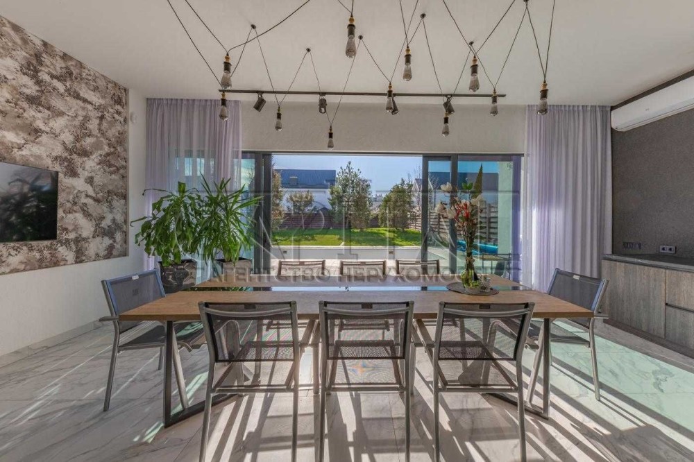 Цей будинок повністю мебльований та обладнаний найсучаснішою технікою, включаючи освітлення LED, італійські двері, апаратуру Hansa та Gorenje на кухні, а також пральну машина Bosch. Ви будете насолоджуватися сантехнікою Laufen та Grohe, шторами з електроприводом та каміном на кухні. Крім того, у будинку встановлено 5 кондиціонерів CooperHunter, 5 смарт-телевізорів Samsung різних розмірів та акустику Hi-Fi Yamaha для вашого розваги.