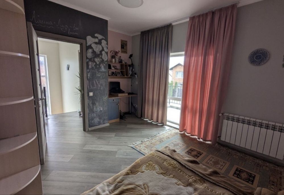 Село Забуччя. 13 км від КП по Житомирській трасі, 19 км від автост.Дачна. 4 км до ЖК Синергія (Ірпінь), 7 км до Бучі. Будинок має 6 кімнат (4 спальні), 2 зали, 4 санвузла, душова. Асфальтований під'Їзд.Будинок під охороною, камери відеоспостереження. Ділянка: Ландшафтний дизайн,басейн, автополив. Відкрита тераса з барбекю. Будинок має мансарду та цокольний поверх. На першому- хол та кухня-студіо, санвузол, туалет та гараж 35 кв.м.. На другому спальня та двоповерховий кабінет, який можно облаштувати під спальню. На третьому кабінет, спальня з санвузлом. Останній поверх- мансарда з санвузлом. На цокольному поверсі велика кімната( під спортзал)де є бігова доріжка, пральна, сауна,душова, техприміщення та 2 кімнати-кладові. На другому поверсі відкрита велика тераса, на третьому балкон. Підлога, керамограніт, плитка, ламінат. Газове опалення, підігрів підлоги на декількох поверхах. камін, сауна. 3 кондіціонера, газовий котел та електроболер. Інтернет оптоволокно.