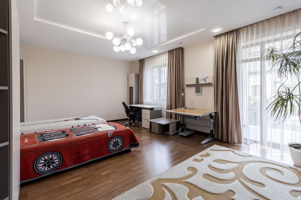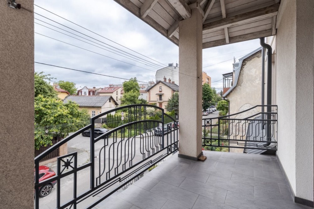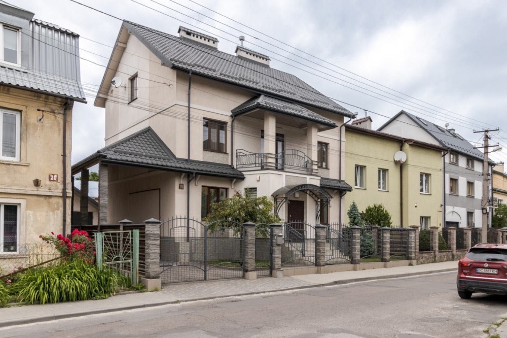 Будинок розташований на тихій вулиці Сулими. Це триповерхова будівля з сучасним плануванням. На першому поверсі знаходяться простора вітальня з функціональним каміном та системою припливно-витяжної вентиляції, велика кухня, повністю укомплектована сучасною побутовою технікою, окремий санвузол, гостьова кімната, а також система підігріву підлоги. Другий поверх включає просторий санвузол, велику спальню, дитячу кімнату з виходом на терасу та велику гардеробну. Третій поверх займає рекреаційна зона з більярдом та тенісним столом, зона відпочинку та санвузол. У підвалі облаштовані додаткова морозильна камера та холодильник, а також загальний фільтр зворотного осмосу для питної води. Підвал також придатний для використання як укриття. Будинок обладнаний витяжною вентиляцією з рекуператором, ґрунтовим теплообмінником, сейфом, резервуаром для питної води з насосом та оптоволоконним інтернет-з'єднанням. У дворі є зона барбекю та паркомісця для 3 авто.