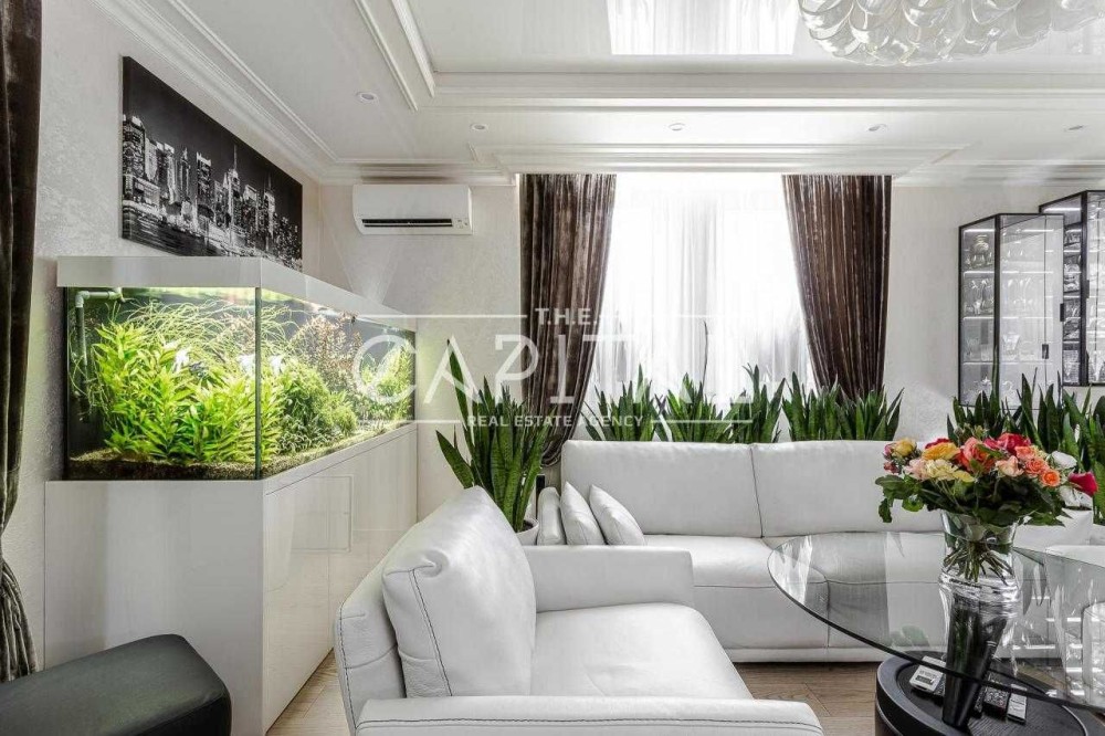 - вітальня, розділена на дві зони: обідня зона з меблями виробництва Нідерланди та зоною відпочинку, оснащеною гарнітуром шкіряних меблів фірми Gamma, а також акваріумом для вашого настрою.