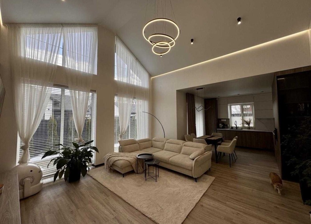 Кухня-вітальня, 3 спальні, одна з яких зі своїм санвузлом та гардеробом, гостьовий санвузол, топкова та невеличка тераса!