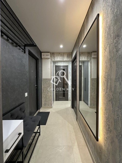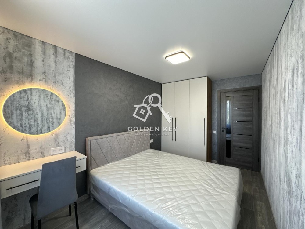 Повністю новий ремонт, укомплектована необхідною технікою та меблями, все продумано до дрібниць: варильна поверхня газ електро, також є духова шафа, мікрохвильовка, холодильник, пральна машина та бойлер для нагріву води. Далі зала, встановлено диван, телевізор смарт, кондиціонер, вдала робоча зона. З зали вихід на лоджію з видом на парк Ювілейний, яка облаштована зоною для релаксу. У спальні для комфортного сну- велике двоспальне ліжко, також є косметичний стіл. У санвузлі- душова кабіна, електросушарка. Багато місць для зберігання речей.