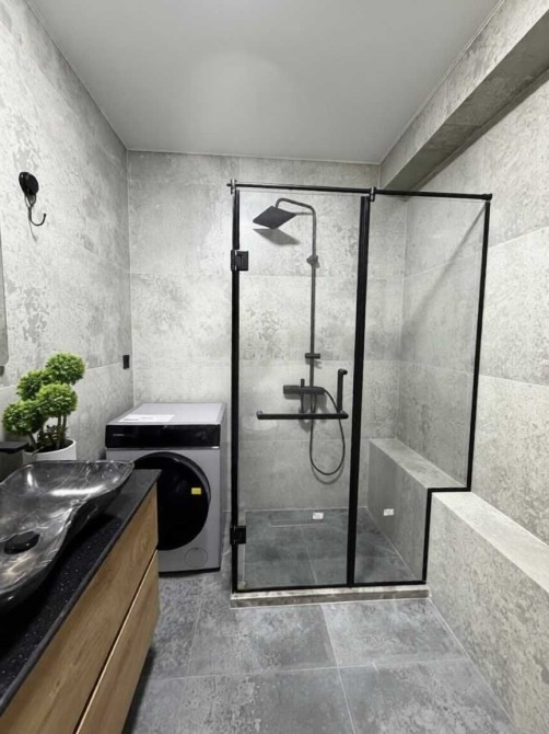 Комплекс з охороною та паркінгом. Велика кухня обладнана всією необхідною вбудованою технікою: великий холодильник, посудомийна машина, духова шафа, мікрохвильова піч, варильна поверхня. Санвузол з душовою кабіною. Окрема спальня з двоспальним ліжком. У квартирі встановлена тепла підлога, є кондиціонери та телевізор.