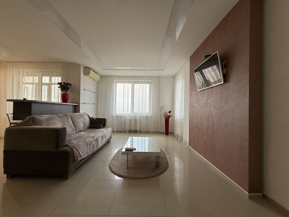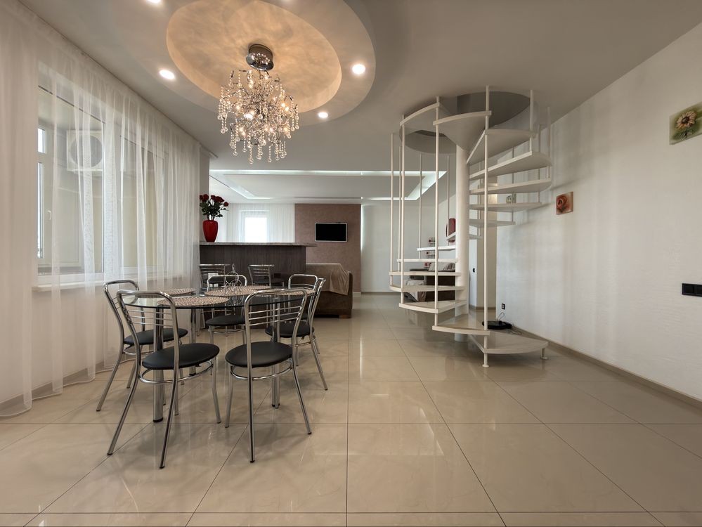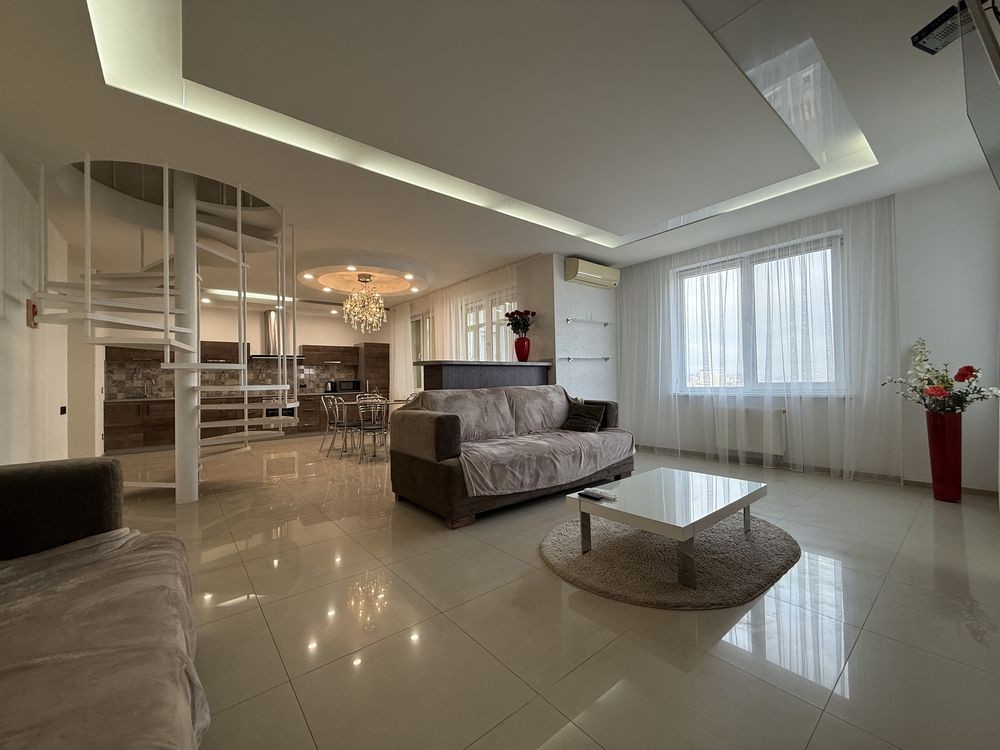 Пропонується в оренду просторий двоповерховий пентхаус із панорамними вікнами та сучасним дизайнерським ремонтом. Квартира розташована на березі 16–17 поверхах.