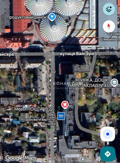 самий центр міста, поруч з овочевим ринком, зона інтенсивного пішохідного трафіку.