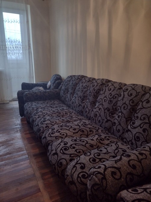 У великій кімнаті диван з кріслами, стінка, є вихід на засклену лоджію.
