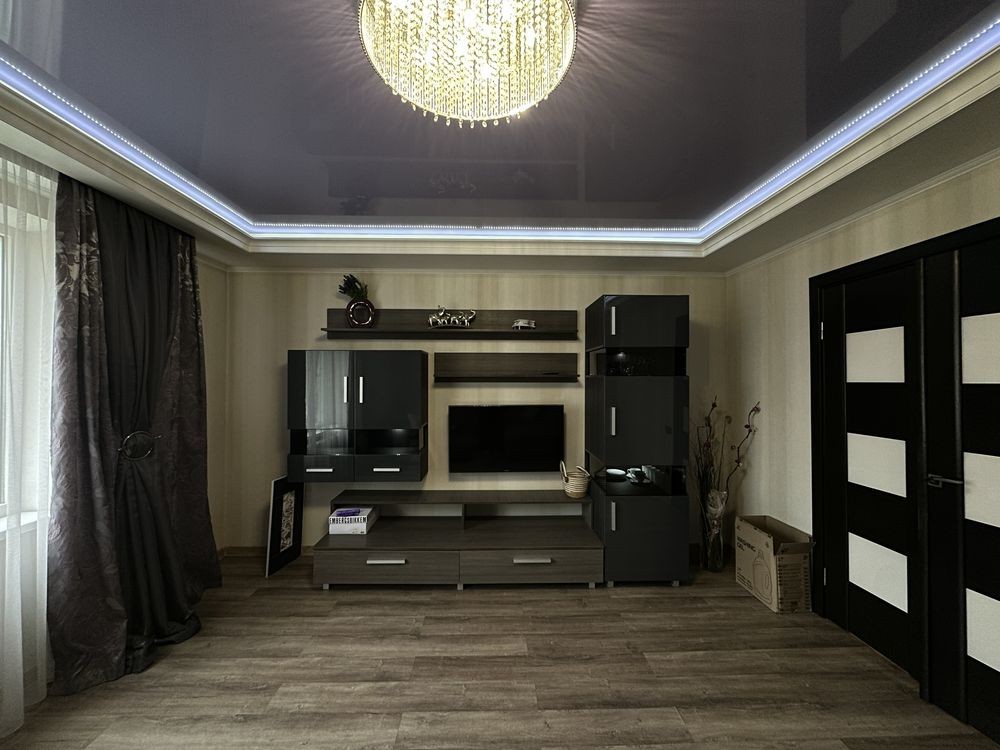 Меблі та техніка: холодильник, пральна та посудомийна машини, газова плита, витяжка, мікрохвильова піч, телевізори, двоспальне ліжко з ортопедичним матрацом, дивани. При відключеннях є інвектор.