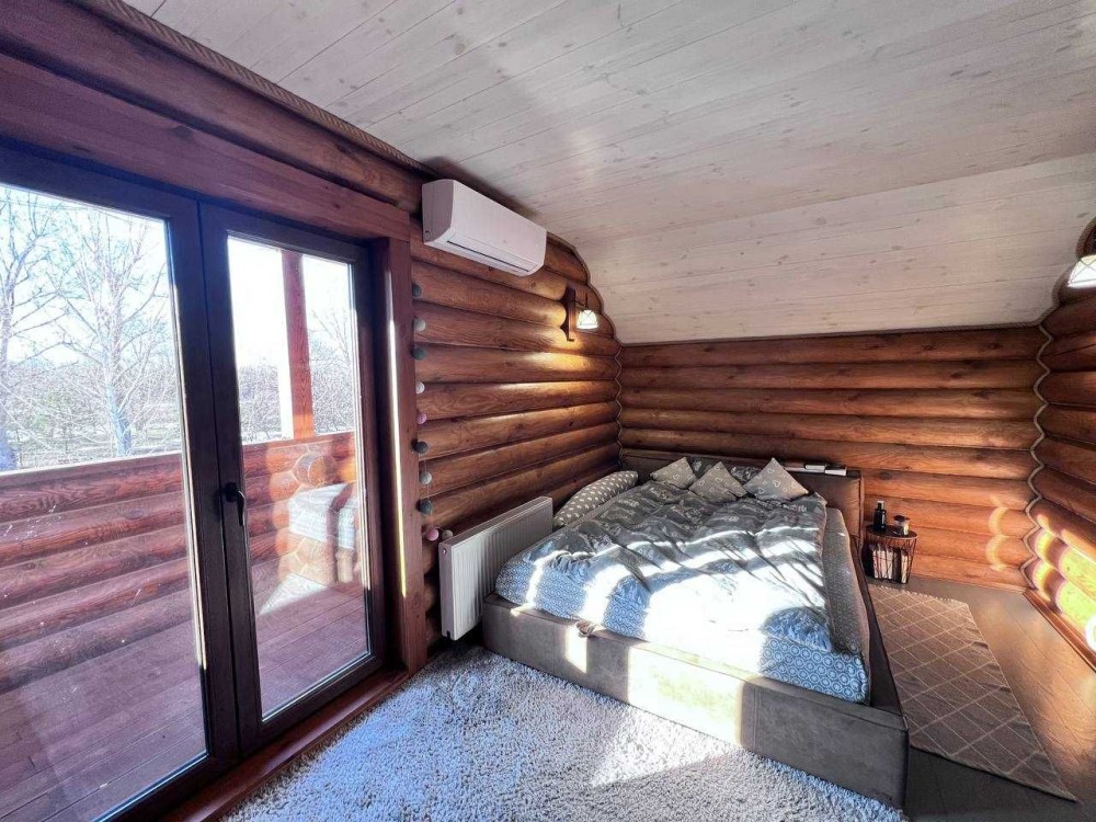 Будинок побудований з натурального дерева, тому всередині завжди комфортна температура: влітку приємна прохолода, а взимку тепло і затишно. Атмосферу домашнього тепла створює пічка та камін у вітальні, а для додаткового комфорту встановлено електричний котел.
