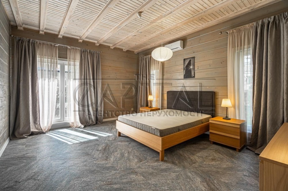 Пропонується в оренду сучасний еко-будинок з клеєного брусу площею 271 м² у котеджному містечку Riverside Family Club, всього за 6 км від станції метро «Славутич», Дарницький район, Київ. Будинок просторний, сучасний, з гармонійним поєднанням комфорту та екологічності.