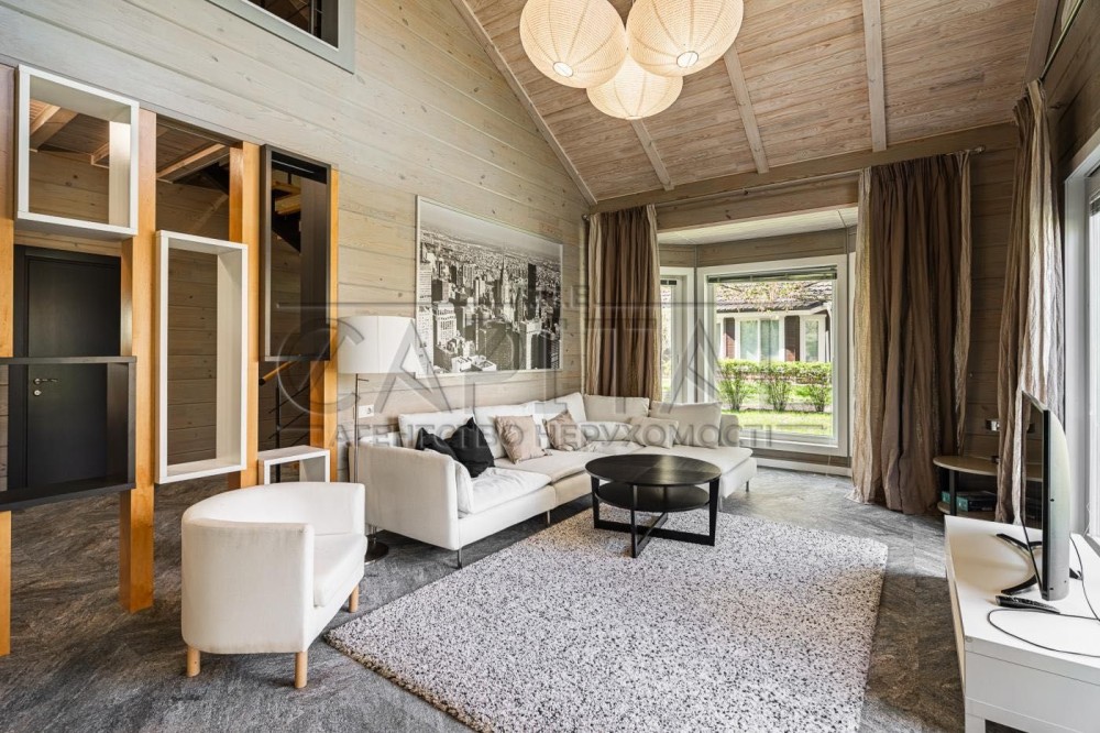 Сдается современный эко-дом из клееного бруса площадью 271 м² в коттеджном поселке Riverside Family Club, всего в 6 км от станции метро «Славутич», Дарницкий район, Киев. Дом просторный, современный, с гармоничным сочетанием комфорта и экологичности.