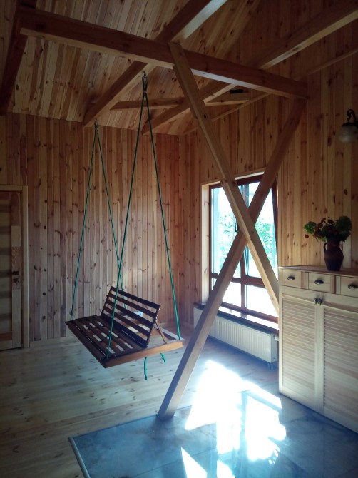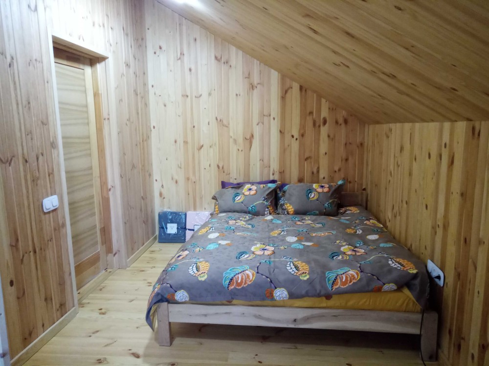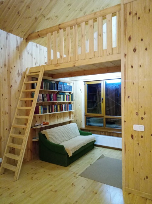 частина дома на 2 поверсі з окремим входом зна довгострокову оренду сім'я з 2-х або з 3-х осіб -зручне сучасне ЕКО -помешкання з дерева, ж/б на березі р. Десна, І лінія в с. Хотянівка з усіма зручностями на єдиний території 28 соток разом з власниками, є генератор, Wi Fi.