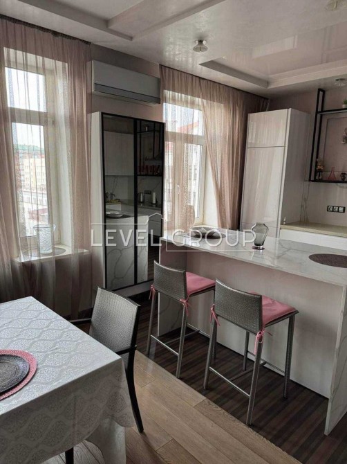 Квартира повністю мебльована (виключно натуральні матеріали), обладнана всією необхідною побутовою технікою, а також має теплу підлогу та кондиціонери.