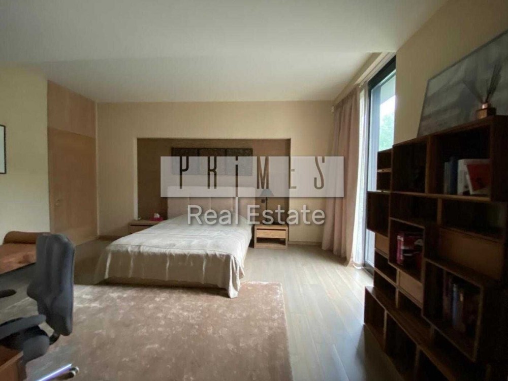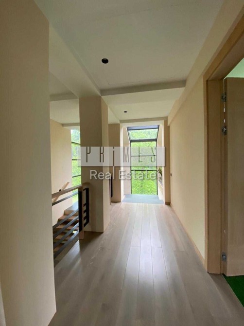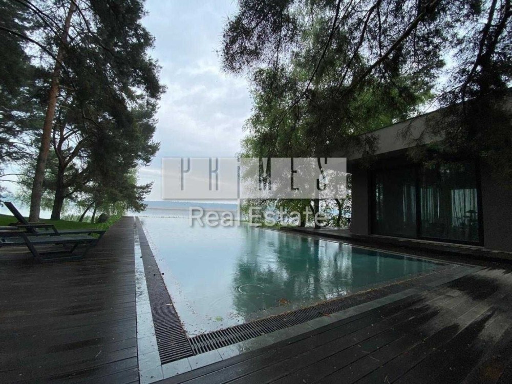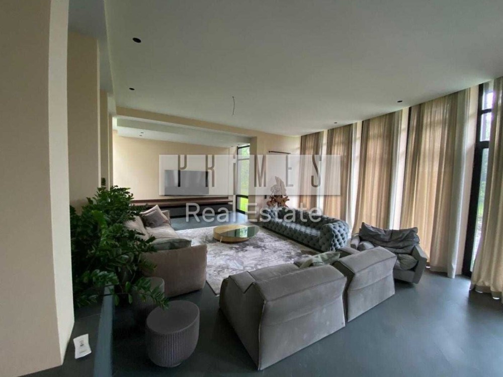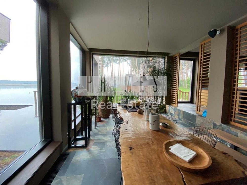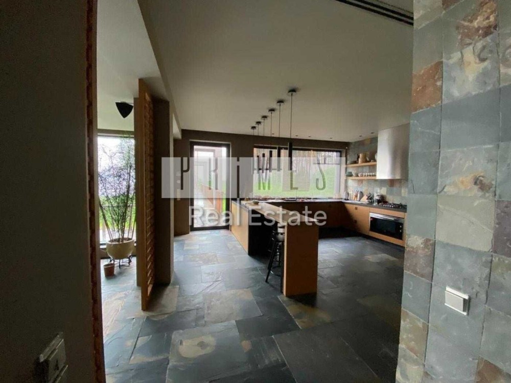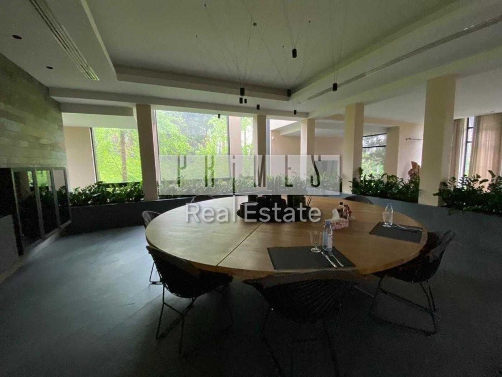 Пропонується в оренду унікальний двоповерховий будинок категорії «Deluxe» загальною площею 1030 м², розташований на закритій охоронюваній території. Це резиденція, з високоякісними матеріалами та сучасними інженерними системами. Архітектура будинку нетипова для української заміської нерухомості — зі світлими відкритими просторами, панорамними вікнами, другим світлом, скляними стінами та спеціально виготовленими великоформатними світловими елементами. Будинок розташований у сосновому лісі, на материковому березі давньої річки Стугна.