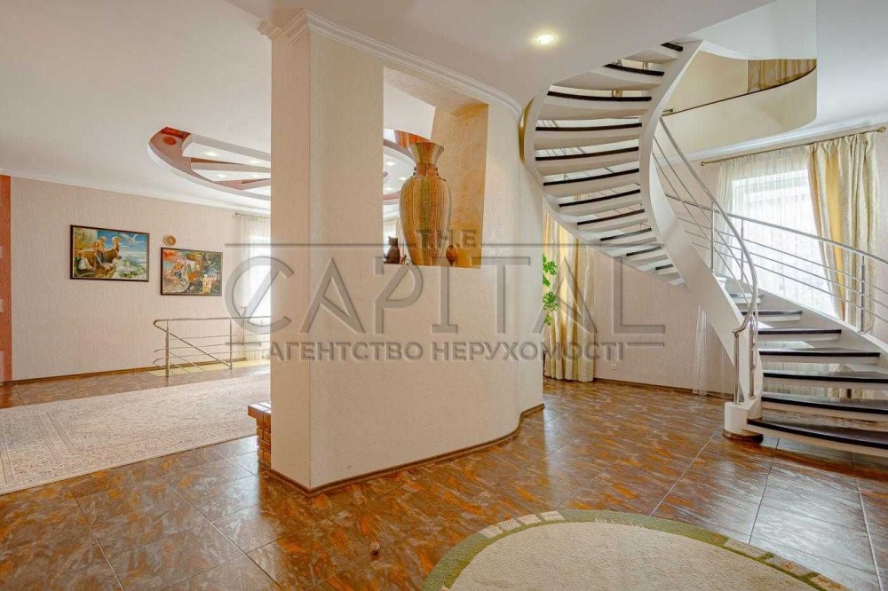 Ділянка 12 соток з ландшафтним дизайном на два рівні межує із зеленою водоохоронною зоною. Є прямий вихід до води, зона барбекю з альтанкою, окремий будинок сауни з басейном, власна свердловина, два окремі заїзди, гараж на 2 авто та простора гостьова парковка.