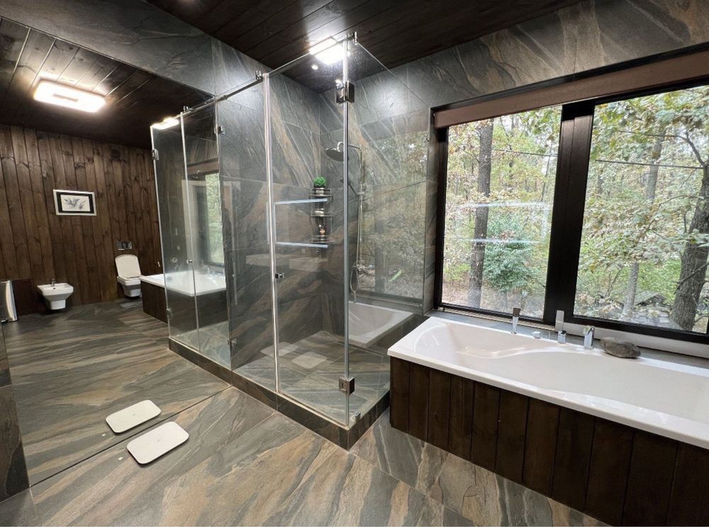 Будинок розташований серед лісу, що створює атмосферу приватного маєтку, однак до Києва — лише кілька хвилин на авто. Ідеальне поєднання тиші, безпеки та преміального комфорту.