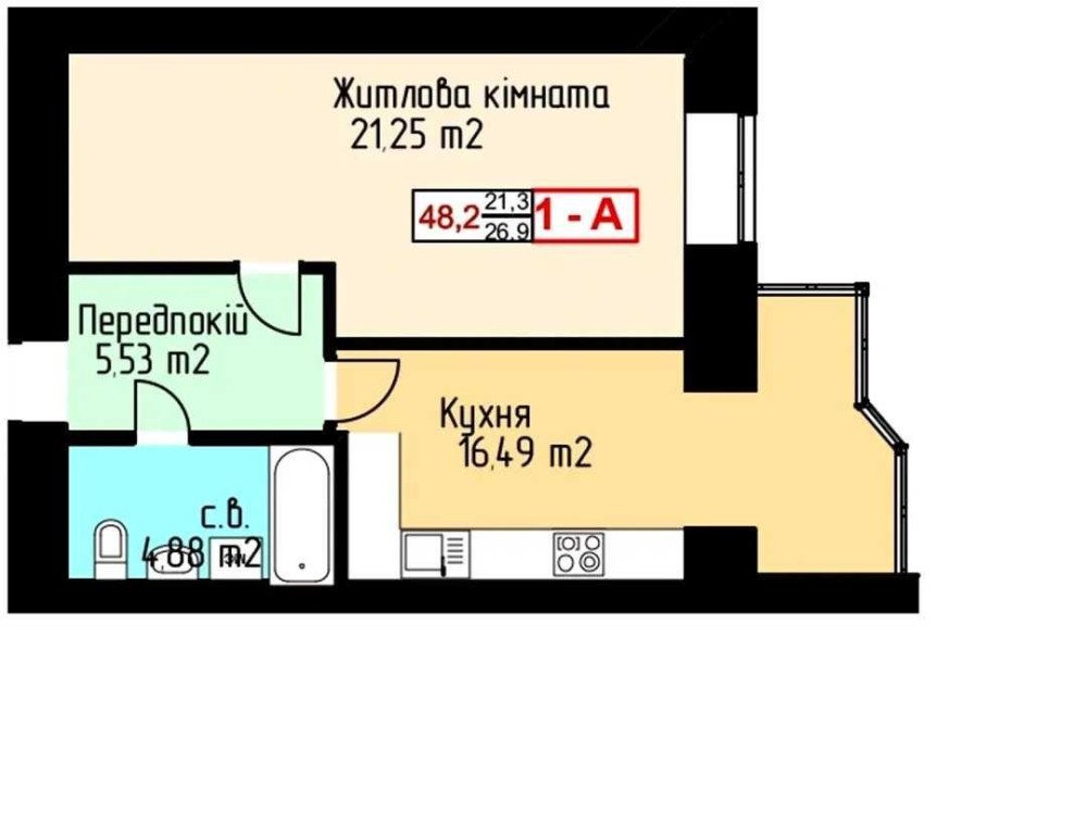 • Общая площадь 48 м2