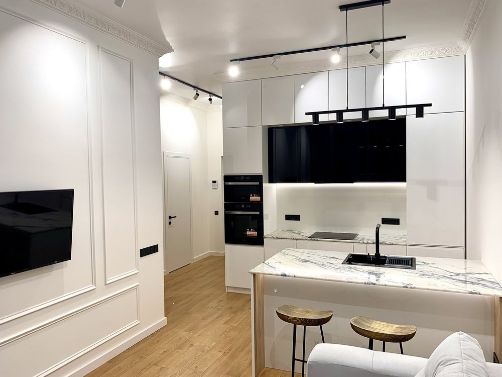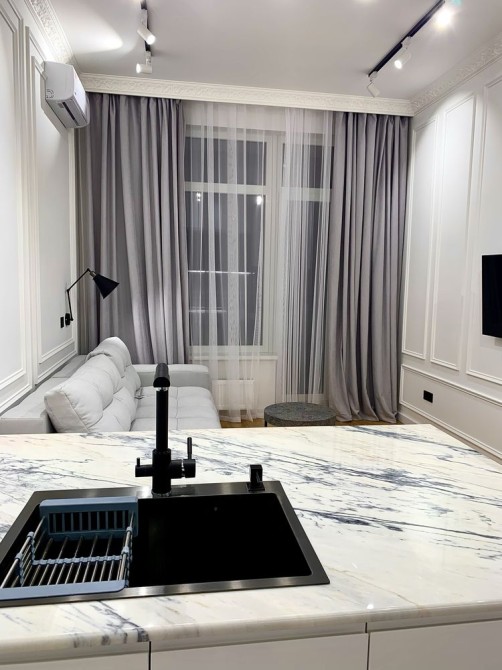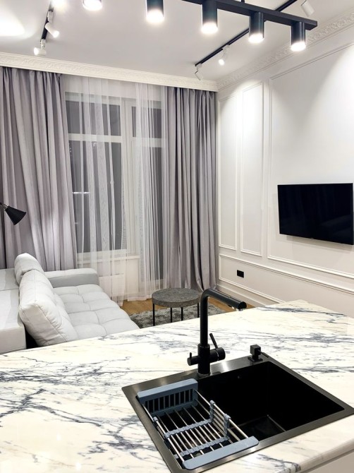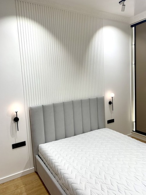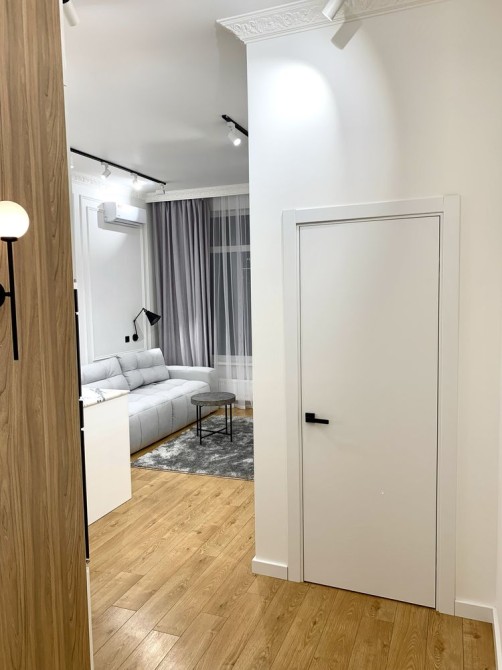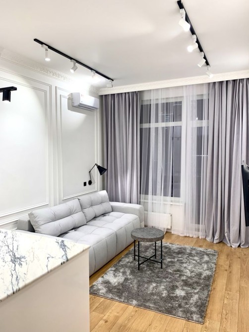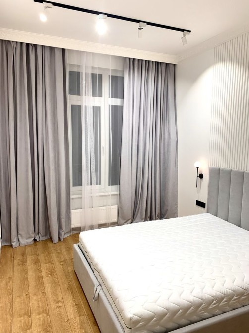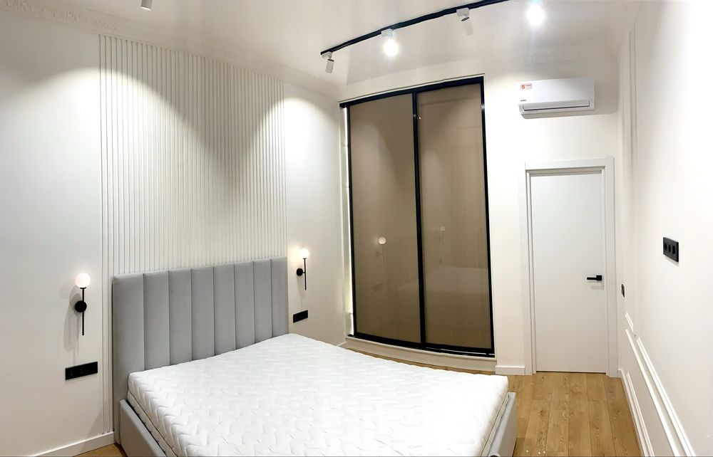 Квартира з якісним ремонтом. Спальня і кухня-студія, гардеробна, суміжний санвузол. Великий балкон з видом у чудовий двір. Всі необхідні меблі та техніка. В будинку закрита територія без машин, охорона, є підземний паркінг. Власна котельня-завжди працюють ліфти, є опалення і вода.