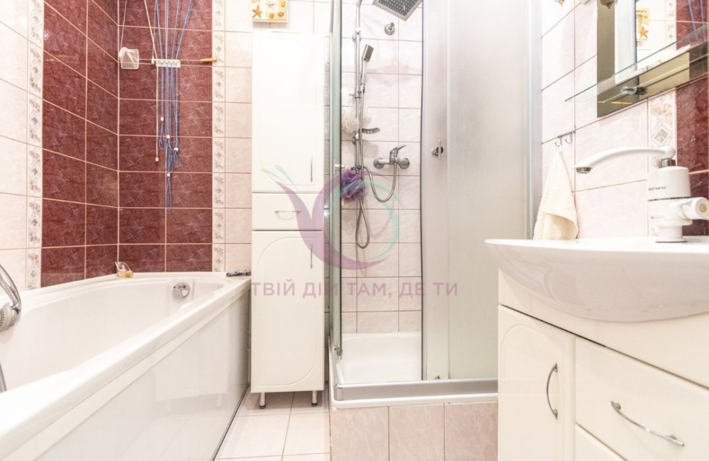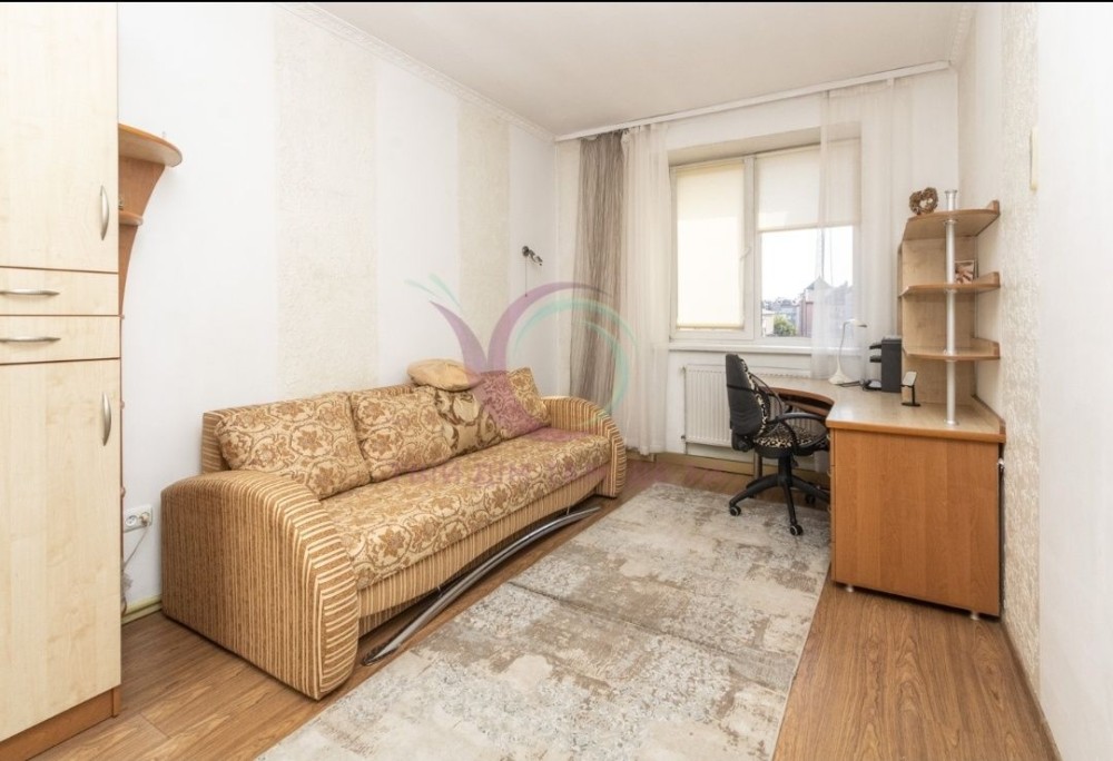 Затишна квартира має зручне планування: окремі мебльовані житлові кімнати з міжкімнатними дверима (кабінет, вітальня, спальня кімната з виходом на балкон), кухня площею 10 м2 також має вихід на балкон, санвузол роздільний з ванною кімнатою, яка обладнана ванною, душовою кабіною, та якісною сантехнікою.