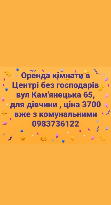 Оренда кімнати в Центрі Проживання без власників. Для дівчини . 3700 вже з комунальними