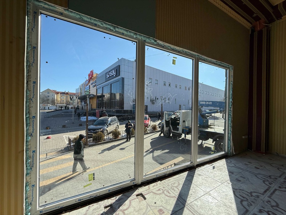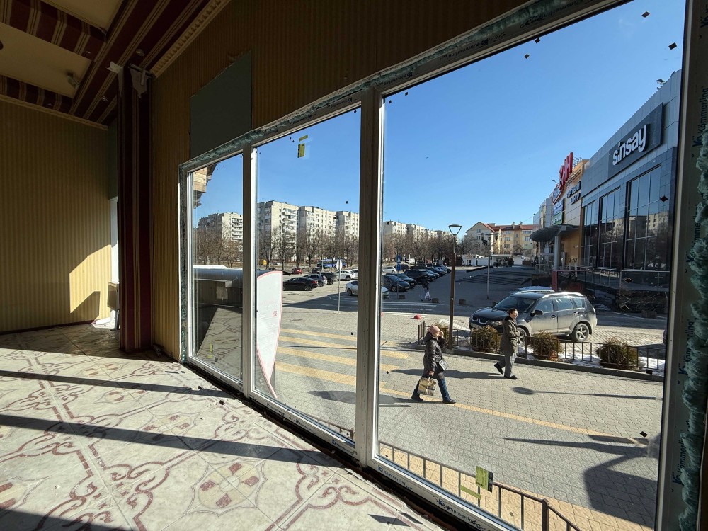• Панорамні вікна з видом на парковку Сільпо