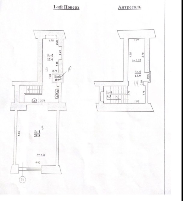 60,5 кв.м. (торг.зал 28,8 кв.м., допоміжні приміщення – складське приміщення, сходи, туалет 17,8 кв.м., антресоль 13,9 кв.м.).