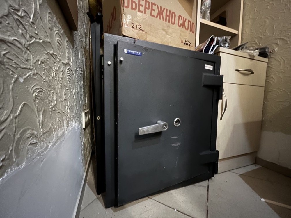- Є кладова (з броньованими дверима та сейфом) та вбиральня