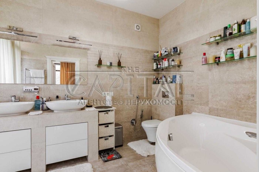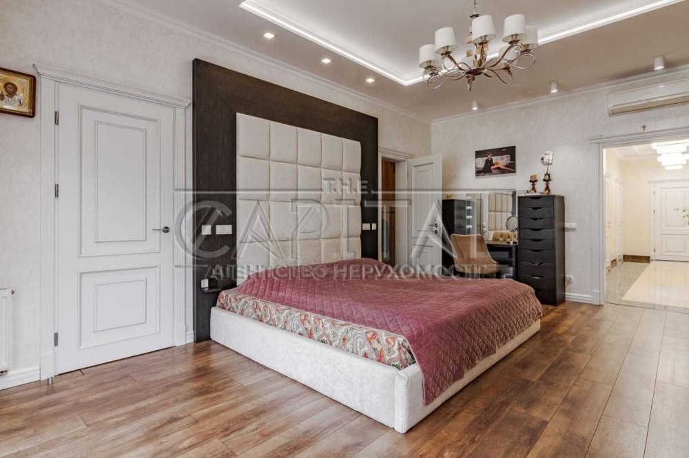 Пропонується в оренду сучасний двоповерховий будинок площею 365 м² на тихій тупиковій вулиці у Шевченківському районі Києва. Ділянка 8 соток з ландшафтним дизайном, великою кількістю дерев, кущів та квітів. На території автонавіс на 2–3 авто, сад, дитячий майданчик, зона барбекю та альтанки для відпочинку.