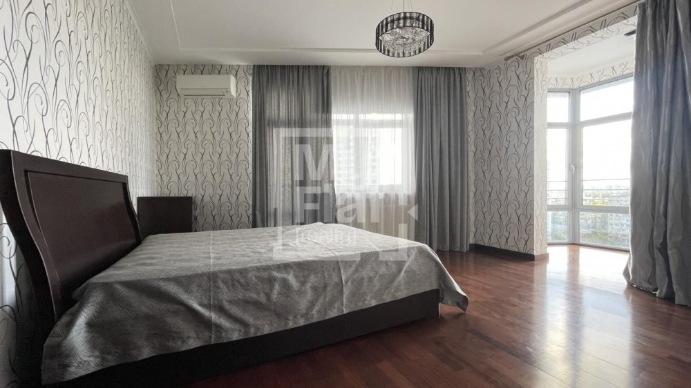 Простора 3-кімнатна квартира в новому будинку площею 140 кв.м. розташована на 14 поверсі. У квартирі: кухня студіо з зоною кухні та їдальні, 2 спальні, 2 з/в, вбиральня. Виконаний сучасний євро ремонт, нові сучасні меблі, якісні матеріали та сантехніка. Всі квартири на поверсі відремонтовані, тихі сусіди. Є паркінг підземний.
