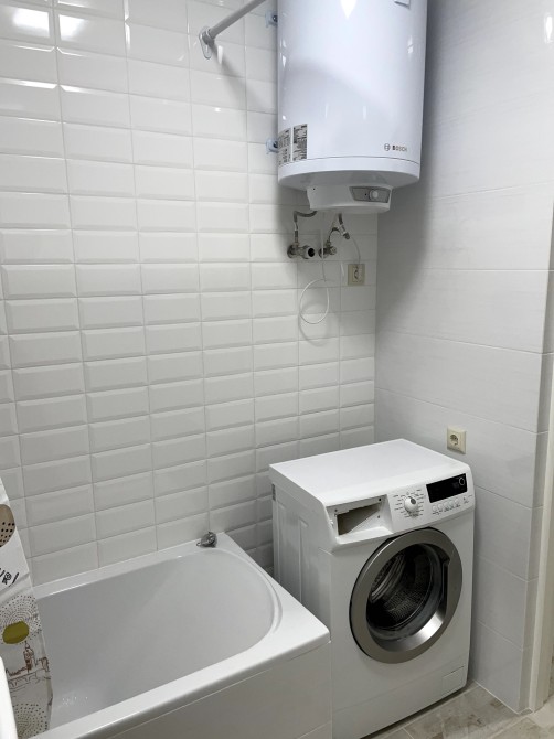 Велика простора кухня-вітальня. Холодильник, духова шафа, витяжка, електропіч, чайник. Розміщений гарний зручний диван(розкладний). У спальні комфортне ліжко, тумбочки, комод, кондиціонер і велика шафа. У ванній є пралка та встановлений бойлер.