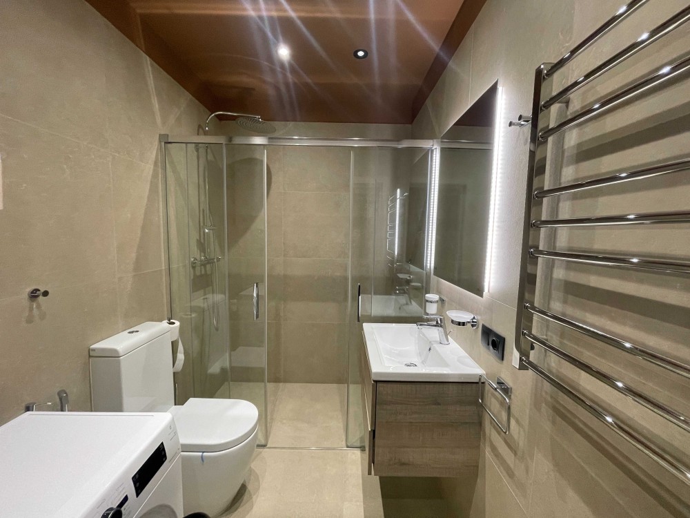 • Комфорт Кондиционер, Подогрев полов, Душевая кабина, Видеонаблюдение, Охраняемая территория, Парковочное место, Гостевой паркинг