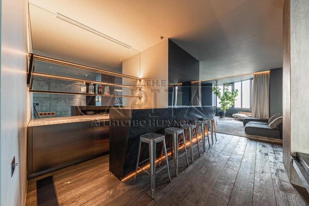 Атмосфера елегантності та розкіші переплітається в кожній деталі цього розкішного пентхаусу на бульварі Лесі Українки, 7А.