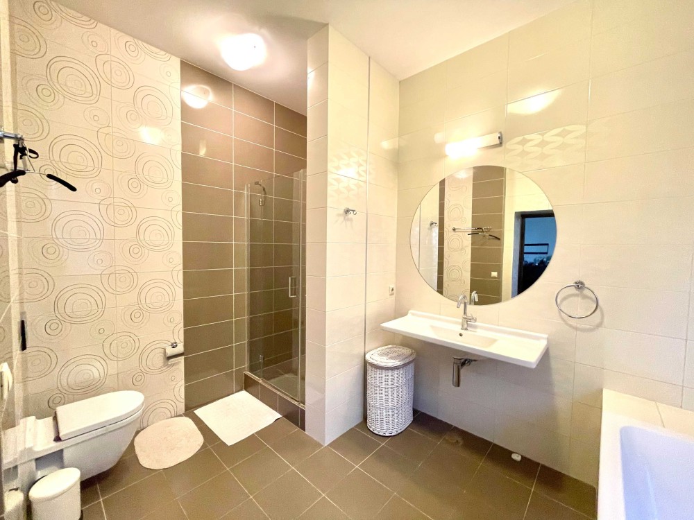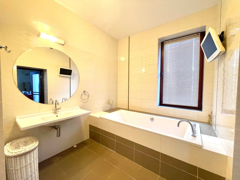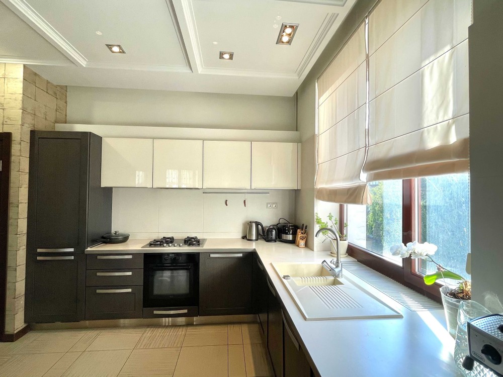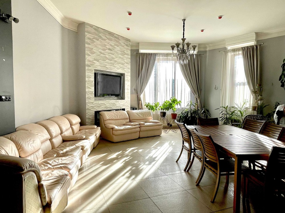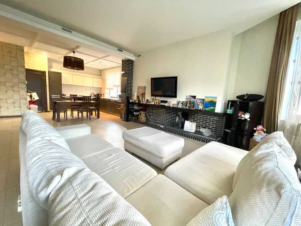 Велика кухня-студія з каміном. Дві спальні. Велика гардеробна кімната. Тепла підлога. Три санвузли. Два балкони. Якісна фільтрація води, фільтри грубої і тонкої очистки, вугільні фільтри і пом'якшувачі води. Центральне кондиціювання Daikin. Автономне опалення.