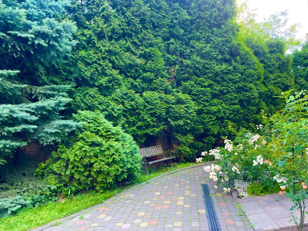 Доглянута територія з газонами, деревами і квітами. Зони відпочинку для дітей та дорослих. Зона барбекю. Парковка.