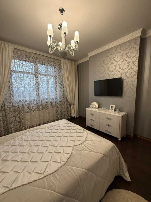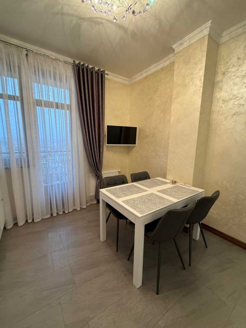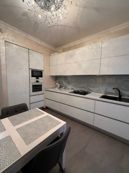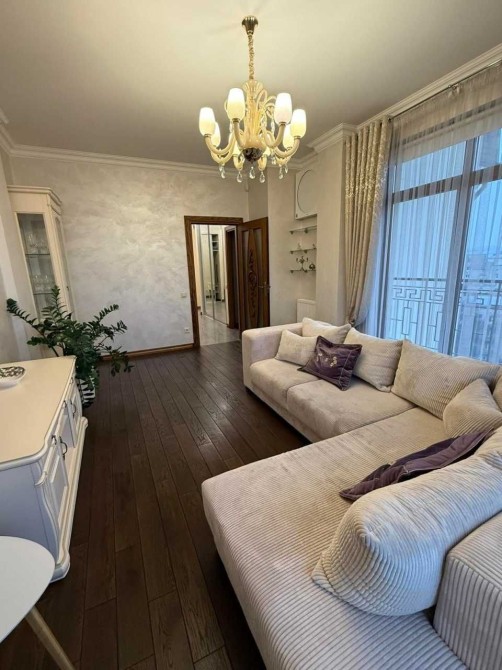 Площа 72 кв.м., 8/10 пов. Два балкони з панорамними вікнами з краєвидами на центр міста. Сучасний якісний ремонт, повна комплектація: посуд, постіль, порохотяг, праска, телевізор, усі необхідні меблі та побутова техніка, швидкісний інтернет. Квартира повністю готова до поселення.